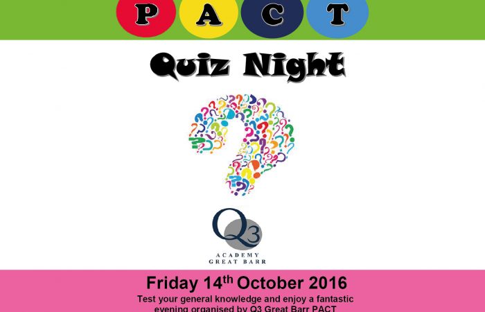 Test your general knowledge and enjoy a fantastic evening organised by Q3 Academy Great Barr P.A.C.T.