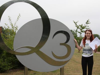 Q3 Academy Great Barr is celebrating another fantastic year of A-Level results with 100% of students receiving at least 1 A-Level. All students who took 2 or more A-Levels achieved 100% pass rate, with one student securing 3 A* and 1 A at A-Level in Fine Art Textiles, Fine Art, Psychology and EPQ.